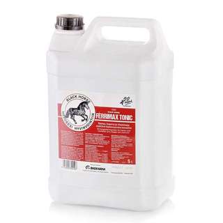 Black Horse Ferrimax Tonic auttaa ylläpitämään urheiluhevosen raudansaantia valmennus- ja kilpailukaudella. Hevosille 25 ml päivässä 2-4 viikon kuureina. Sekoitetaan rehun joukkoon.